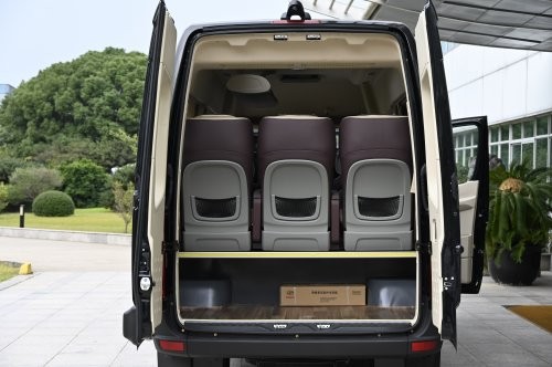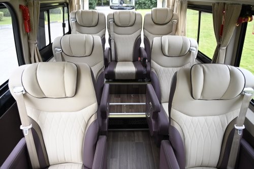 司乘分离的特点,搭配上C照可驾的独特优势,完美契合当前盛行的“青甘大环线”等定制化小团出行需求,让4-8人小团旅客在旅途中尽享尊贵体验。 在乘坐舒适性方面,车辆搭载的1+1大商务豪华座椅集通风、加热、气动按摩功能于一身,叠加电动伸缩踏步、豪华踏步迎宾灯,让乘客从踏步上车开始即可感受“五星级”旅游,真正实现“全员VIP”的出行理念。