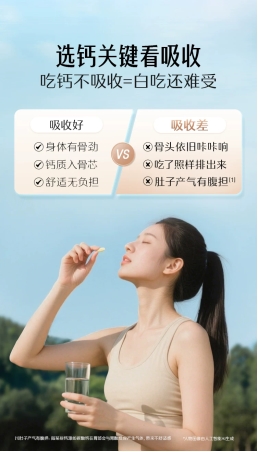 在钙的选择上,钙源的形式至关重要。柠檬酸钙相较于常见的碳酸钙具有显著优势。柠檬酸钙的吸收不依赖于胃酸环境,餐前或餐后服用皆可,不仅吸收率更为稳定,对胃肠道也更为温和,适合更多人群。然而,选对钙源仅是有效补钙的第一步。要让钙质真正被骨骼吸收利用,离不开两个关键营养素的协同作用,维生素D3和维生素K2。维生素D3的主要功能是促进肠道对钙的吸收,如同将“钙质”运送至血液循环的“运输队”。而维生素K2则扮演着“导航员”的角色,它能激活骨骼中的骨钙蛋白,引导血液中的钙精准沉积于骨骼,而非滞留于软组织中。两者相辅相成,形成一个从“吸收”到“利用”的完整闭环,从而显著提升补钙的整体效能。Swisse 钙片正是基于这一科学原理,采用柠檬酸钙为主要钙源,并科学配比维生素D3和维生素K2,实现更高效、更精准的骨骼营养补充。