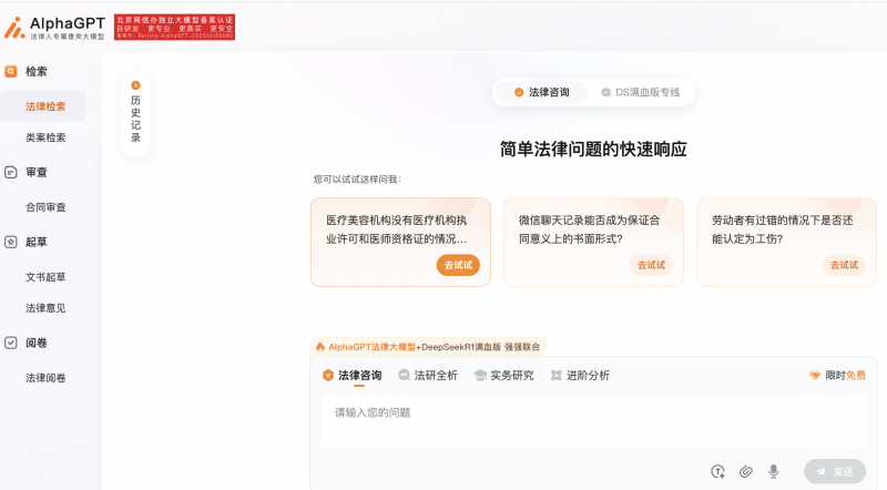 今年,AlphaAI工具完成关键性技术升级,成为国内首个实现“DeepSeek推理能力+法律专业属性”深度融合的法律垂域大模型。这一突破性进展,使其从传统的“信息检索工具”跃升至“智能办案伙伴”:在推理层面,DeepSeek技术赋予模型媲美资深律师的逻辑分析与因果推导能力,面对错综复杂的案情,能快速拆解法律关系、锁定核心争议点;在专业适配层面,经过海量法律语料训练的模型,已精准掌握法律术语规范、裁判文书逻辑结构,彻底解决了“AI生成内容与法律实务脱节”的行业痛点。