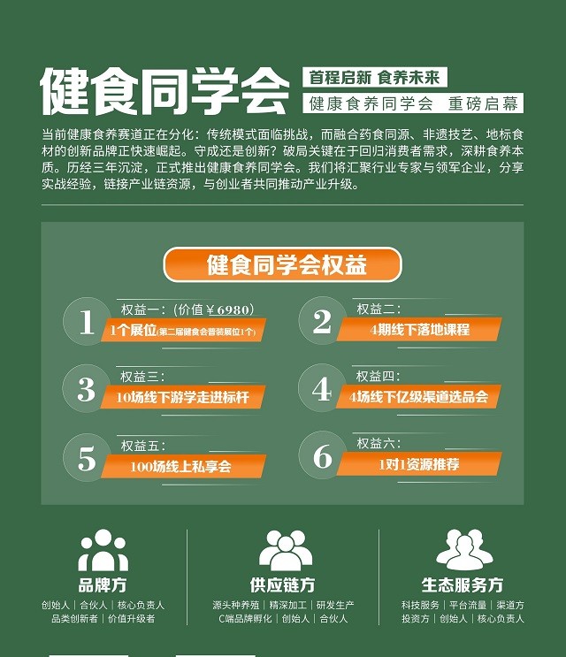 从“科技定义产品”的硬核创新,到“渠道重塑增长”的模式变革,2026健康食养大会不仅是一次行业的集体阅兵,更吹响了万亿赛道破局向上的号角。未来,随着“健食同学会”的持续运作与产业生态的深度链接,中国健康食养产业将在品质化、标准化与数字化的驱动下,打破内卷迷局,重构信任链条,共同书写“健康中国”战略下的新篇章。