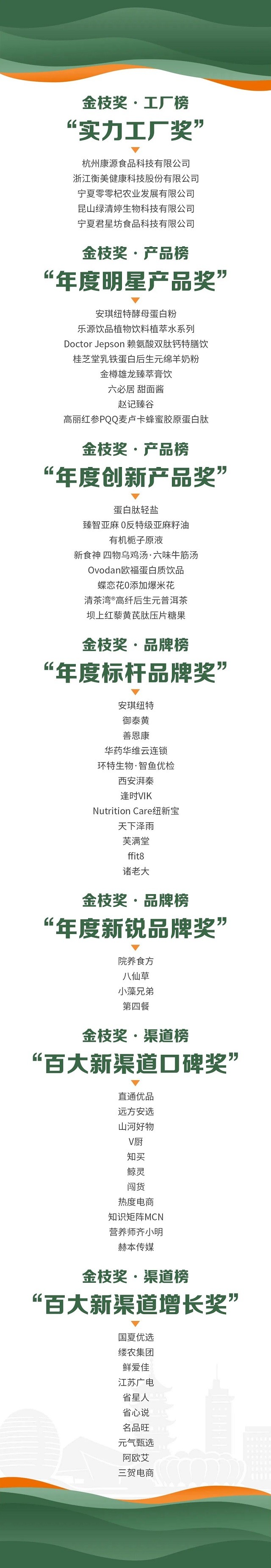 本次评选重磅颁发了实力工厂奖、年度明星产品奖、年度创新产品奖、年度标杆品牌奖、年度新锐品牌奖、百大新渠道口碑奖、百大新渠道增长奖七大核心奖项。这些荣誉不仅是对产业链各环节核心参与者的高度认可,更通过树立获奖企业的标杆案例,为整个健康食养产业确立了清晰的价值坐标,生动彰显了行业在品质升级、技术创新与渠道融合方面的巨大潜力,有力推动了大健康产业的高质量前行。