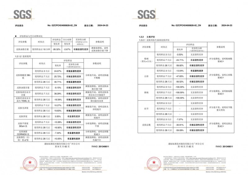 连续使用 28 天,闭口粉刺痘 -59.09%、皮肤毛孔 -13.64%、粗糙度 -30.71%、光泽度 +19.83%!