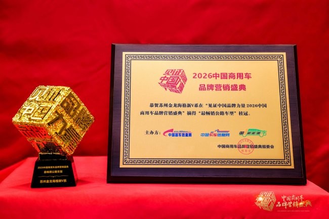 以创新为引擎,破浪前行,推动中国智造不断向高端攀升。这份深耘行业的匠心,再次收获权威认可。4月9日,由中国客车信息网、中国卡车信息网、第1新能源车网联合主办的"见证品牌力量——2026(第六届)中国商用车品牌营销盛典"在北京隆重举行。本次盛典共揭晓品牌、产品、技术、服务、传播五大领域30项荣誉榜单,覆盖100余家主流商用车整车及零部件企业。苏州金龙旗下海格新V系客车凭借卓越的市场表现与过硬的综合实力,荣获"最畅销公路车型"殊荣,彰显中国客车制造领域的顶尖水准。