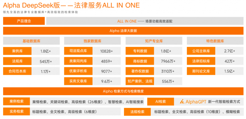 数据覆盖决定检索上限。Alpha 法律大数据平台在底层整合了案例库与法规库两类核心资源,在收录数量和更新速度上为行业领先。