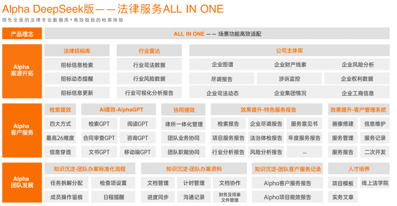 Alpha 法律大数据平台在不同用户侧的价值体现为不同的效率节点。